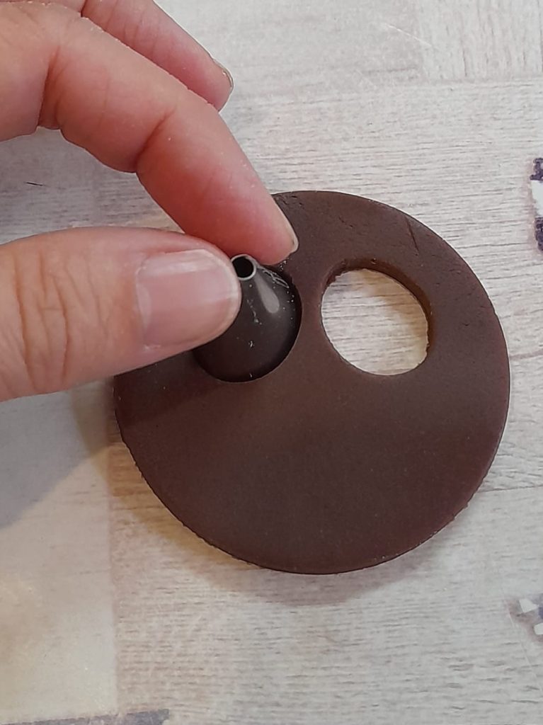 • Tomamos la mitad de los discos de masa quebrada y, con un cortador más pequeño, recortamos dos agujeros para crear los “ojos”.