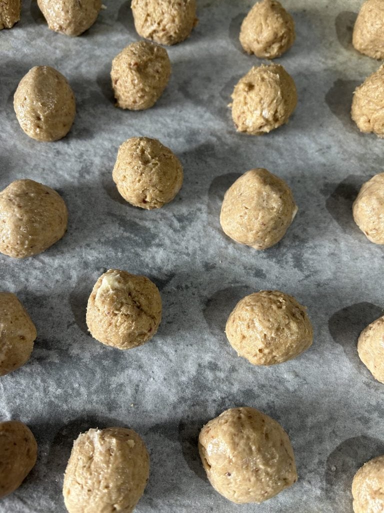 Pasado el tiempo, me humedecí ligeramente las manos bajo el agua corriente y formé pequeñas bolitas, colocándolas en una bandeja cubierta con papel de horno. Horneé las galletas a 180°C durante unos 20 minutos, hasta que adquirieron un bonito color dorado. Una vez horneadas, las dejé enfriar unos minutos… y debo decir que el aroma conquistó inmediatamente a toda la familia! Suaves, dulces y genuinas: perfectas para una merienda saludable, incluso para los más pequeños.