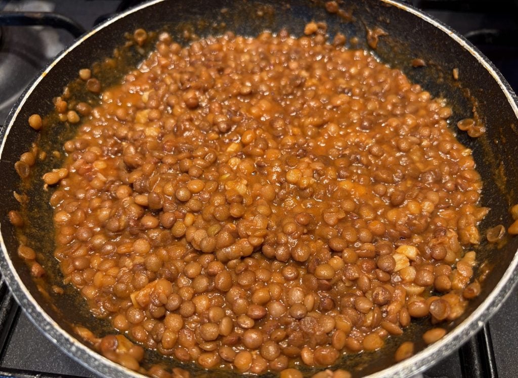 Si las lentejas se «secan» demasiado en la sartén, añade un chorrito de agua o caldo para mantener la cremosidad.