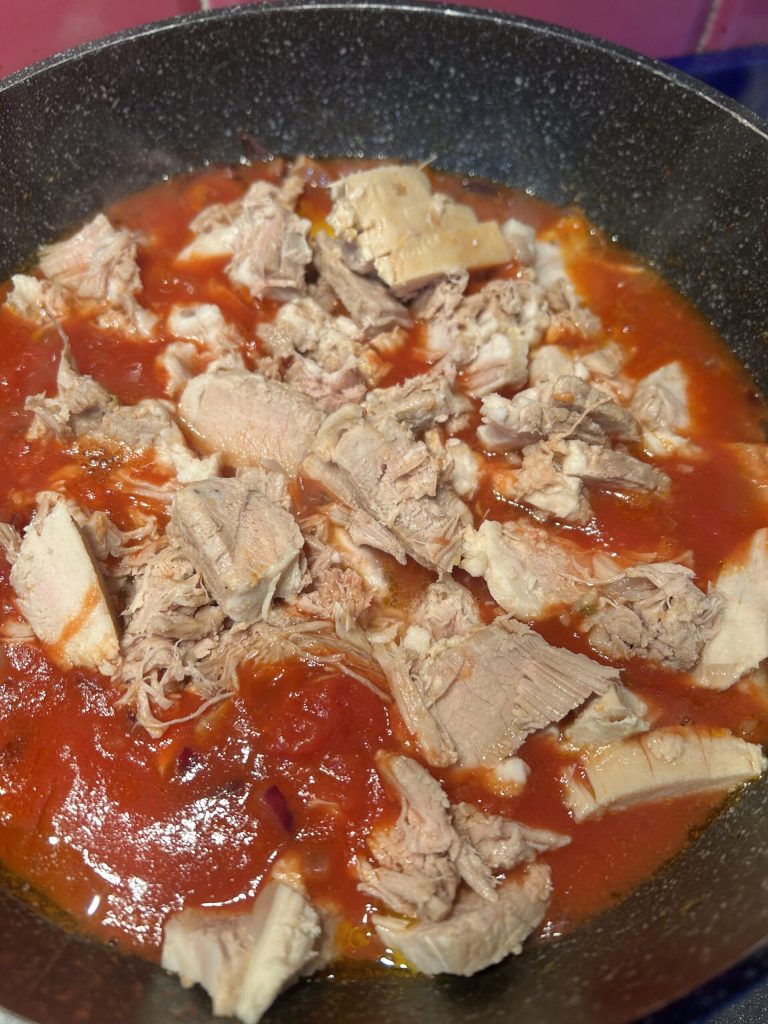 Teniendo ya la carne hervida, la preparación de la picchiapò requiere pocos minutos y la cocción es bastante rápida.