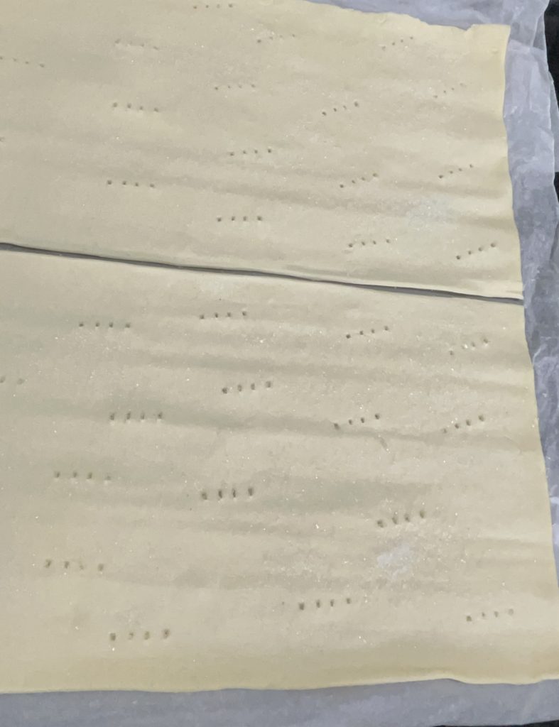 Tomo el hojaldre rectangular y corto tres rectángulos: