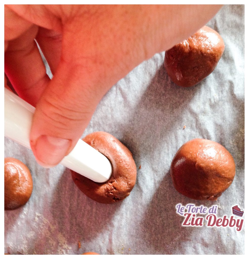 Con la ayuda de cualquier herramienta redonda, crear concavidades en las bolitas. Estas concavidades se rellenarán luego con la Nutella como se ve claramente en el video inicial.