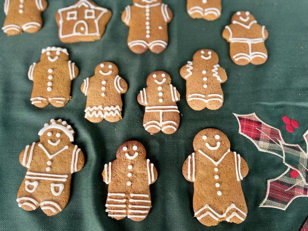 Pan de jengibre o gingerbread una masa para galletas hecha con una mezcla de miel o melaza con azúcar, canela y jengibre. Una masa que caracteriza el período navideño con la que podemos crear simpáticas galletas para decorar, normalmente preparamos los muñecos de pan de jengibre pero podemos hacer muchas construcciones dulces para comer como las casitas y los trenecitos.