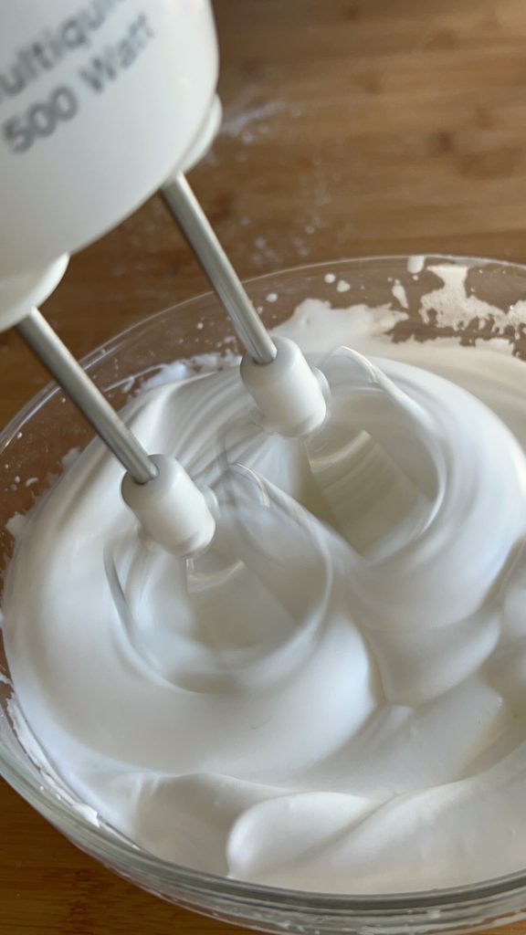 Separe las claras de las yemas y colóquelas en dos cuencos diferentes. Añada unas gotas de limón a las claras y comience a batirlas con la batidora eléctrica a máxima velocidad. Cuando las claras empiecen a tener consistencia, agregue el azúcar en forma de lluvia, poco a poco, continuando a batir hasta obtener una nata bien compacta y espumosa. Al levantar la batidora, las claras no deben deslizarse, sino permanecer bien adheridas a las varillas, señal de que están bien montadas.