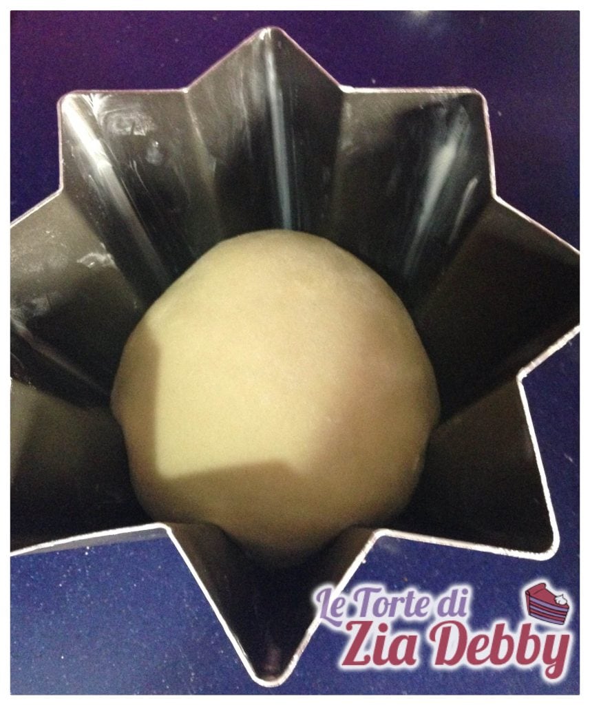 • Unta bien el molde del pandoro en cada rincón y coloca la bola obtenida en el fondo del molde sin comprimir demasiado.