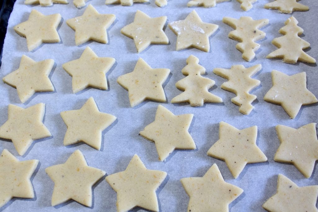 Utiliza los cortadores que prefieras para recortar tus galletas; en el mercado hay muchos, ideales para las fiestas. Trata de recortar las galletas de manera que evites desperdiciar masa, pero no te preocupes: el exceso siempre puede ser amasado y extendido nuevamente hasta agotarlo.