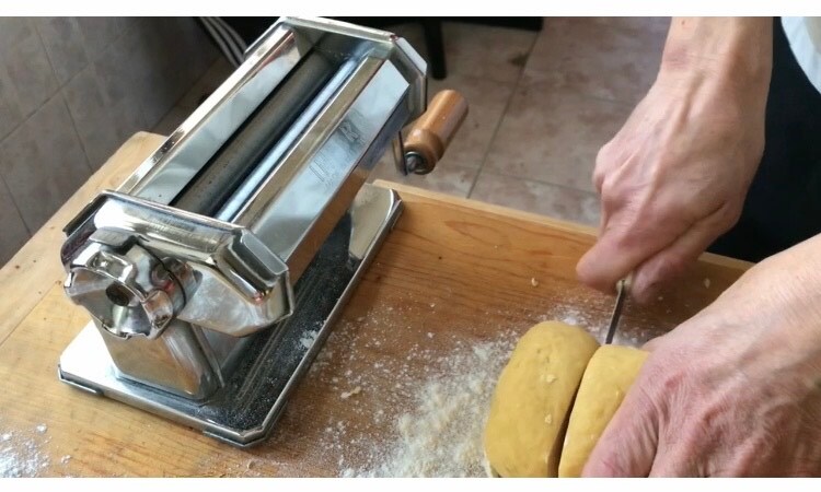 Para la pasta podéis amasar a mano como se ve en mi video o podéis usar la batidora, ya que las cantidades de harina son precisas para obtener una masa perfecta, para luego estirarla con la máquina clásica «nonna papera».