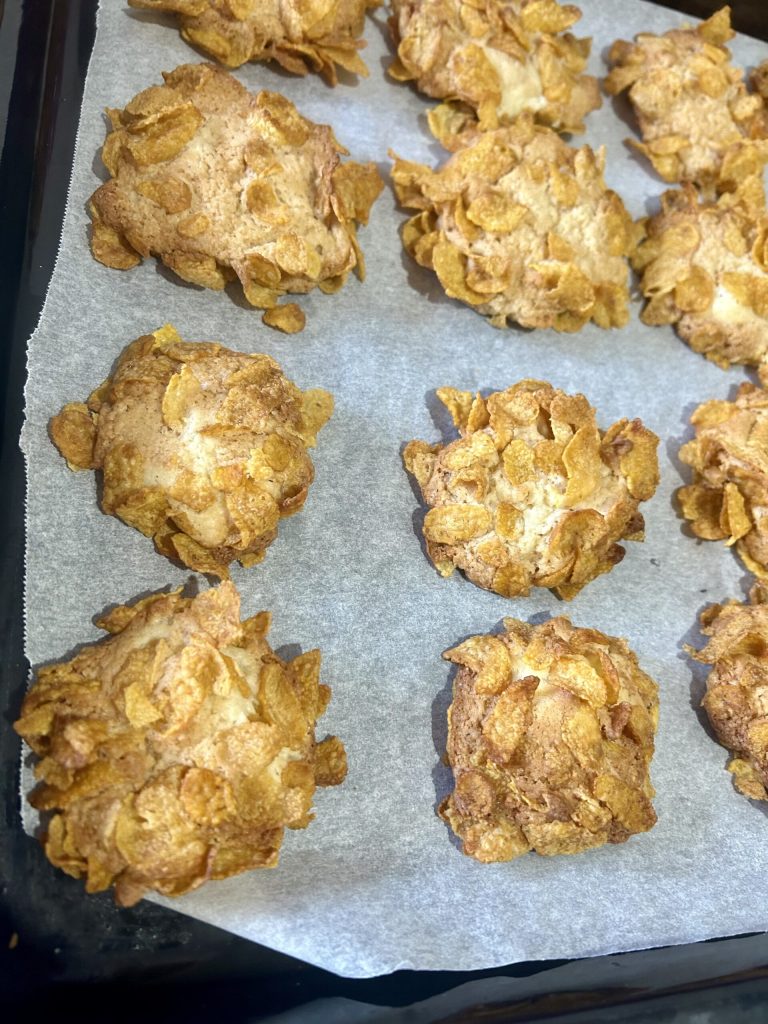 Rosas del desierto sin harina de almendras, deliciosas galletas crujientes por fuera gracias a la cobertura de corn flakes y blandas por dentro por la masa a base de mantequilla montada.