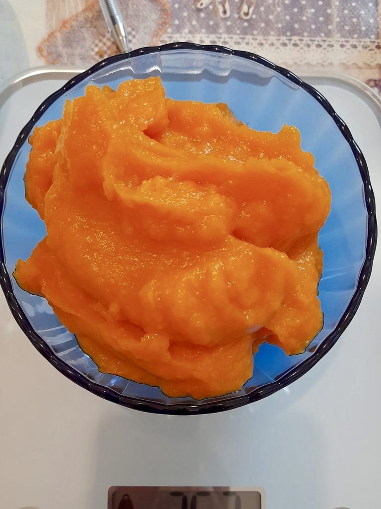 La calabaza se cuece previamente en el horno y luego se transforma en crema con una batidora; a la receta le añadimos una pequeña cantidad de gelatina para mantener la crema estable. Personalmente, preparé con antelación la pulpa de calabaza para eliminar el exceso de agua, pero esto es solo un consejo mío.