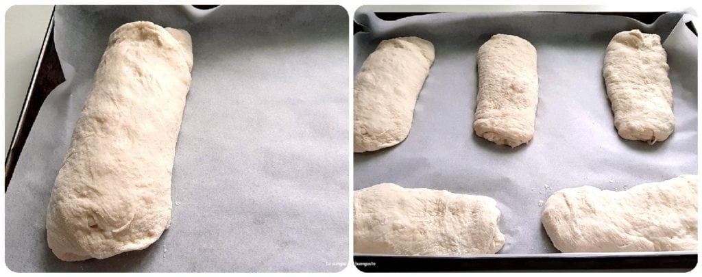 Crear 8 tiras de masa, enrollarlas sobre sí mismas y mientras las enrollamos, extender un poco la masa para obtener bollos alargados.