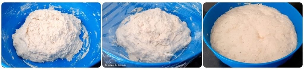 Cubrir el bol con film transparente y dejar fermentar durante unas 2 horas y en todo caso hasta que doble su tamaño.