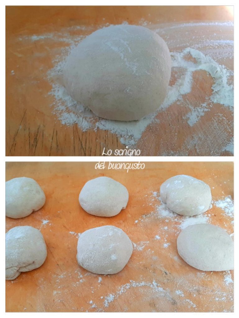 • Una vez que haya fermentado, verter la masa sobre una superficie de trabajo enharinada, amasar hasta recrear una bola y dividirla en 11 piezas formando 11 bolitas, colocándolas bien separadas en la superficie de trabajo y dejar fermentar tapadas durante al menos 30 minutos.