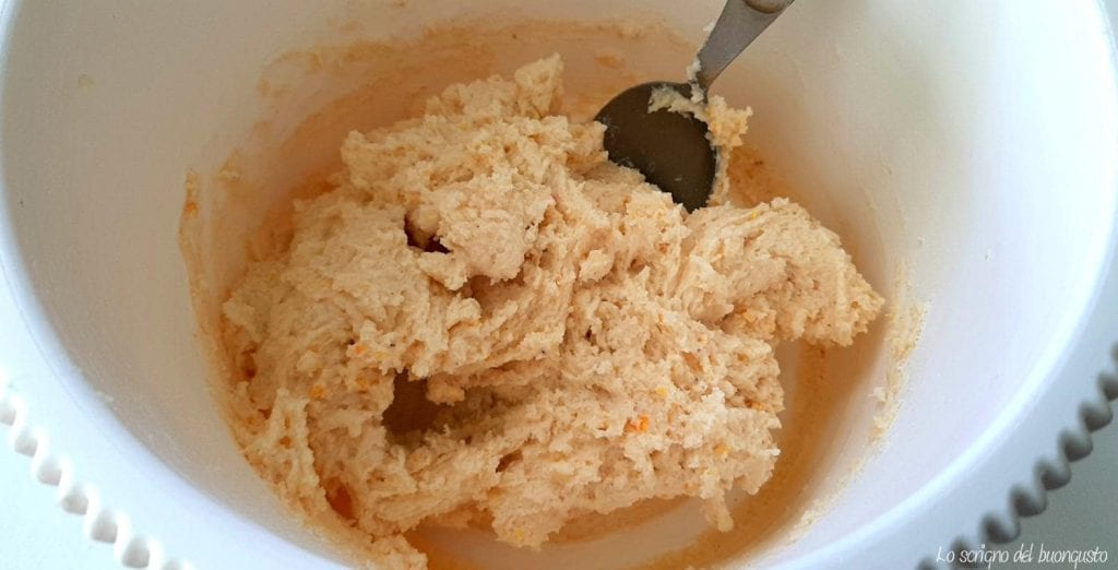 En el mezclador para dulces poner la piel de naranja rallada, la ricotta, el azúcar, la canela, la levadura en polvo y la mitad de la harina.