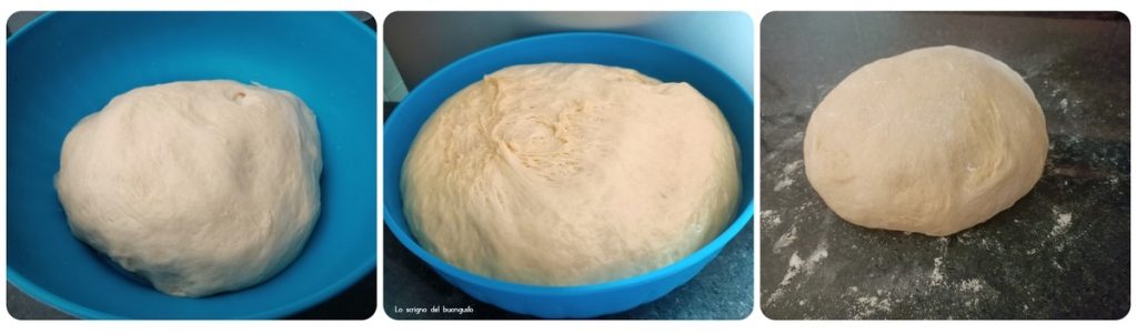 Una vez levado, trasladar la masa a la superficie de trabajo enharinada….