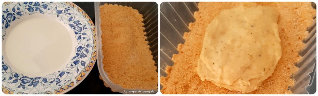 • A este punto preparar dos recipientes, uno con el aceite de semillas y otro con el pan rallado.