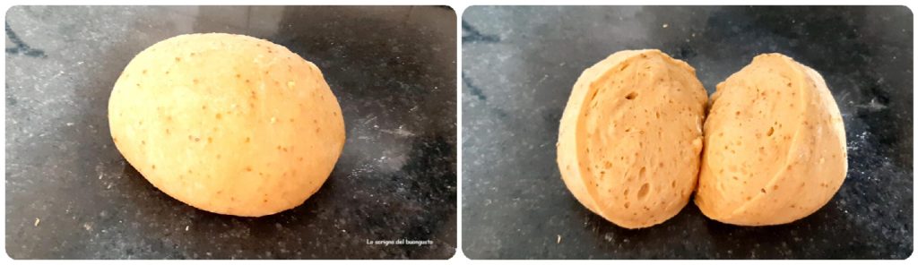 Finalmente, añadir el resto de la harina de los 500 previstos, trabajar bien la masa hasta obtener una masa bien integrada.