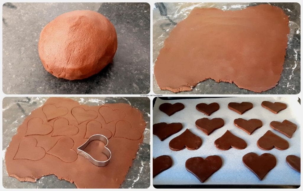 Transcurrido el tiempo, transferir la masa a una superficie de trabajo ligeramente enharinada, extender una lámina no demasiado fina y con un cortapastas en forma de corazón cortar las galletas.