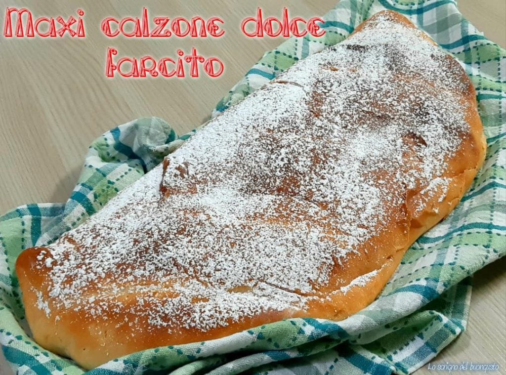 El maxi calzone dulce relleno es una receta pensada para una merienda súper golosa que recuerda a una pizza, solo que es dulce.