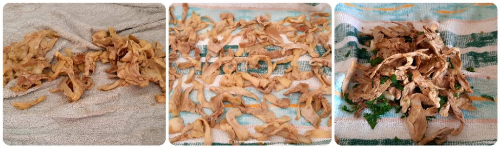 Las transferimos a un paño limpio tratando de separarlas un poco entre ellas y dejarlas al aire durante al menos 24 horas, o bien cubrimos con un papel de cocina y las ponemos en el balcón al resguardo de los rayos solares para que se sequen aún mejor.