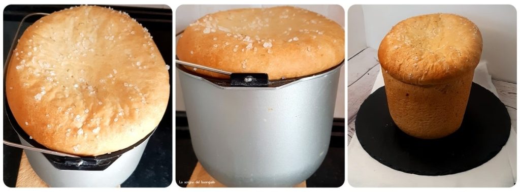 Al terminar la cocción, retirar el cesto de la máquina, dejar enfriar un poco, luego sacar el pan del cesto y ponerlo sobre una tabla de madera o una rejilla para enfriarlo completamente.