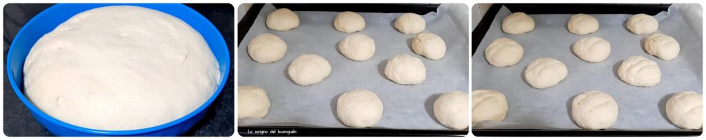 Una vez que haya reposado, transferir la masa a una superficie de trabajo y formar 11 bolitas iguales, colocarlas en una bandeja de horno forrada con papel de horno, hacer cortes en la superficie y dejar reposar aproximadamente 1 hora.