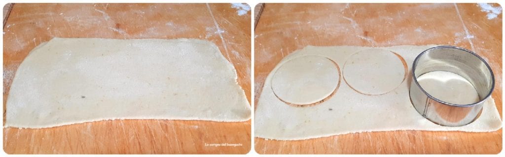 Sacar láminas finas pero no demasiado, yo las pasé al 2º agujero de mi máquina, luego sacar círculos con un cortapastas de 8 cm de diámetro….
