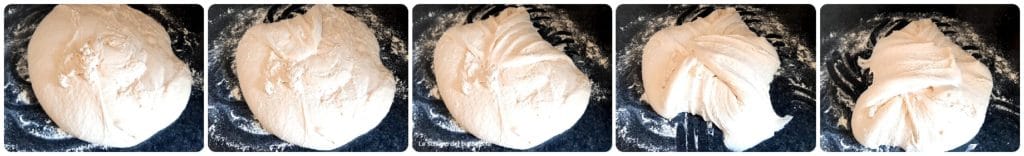 Después de 24 horas, obtener piezas de masa de 250 gr estrangulando piezas de masa de la masa principal, cerrar los bordes de la masa desde el exterior hacia el interior hasta crear una bolita.
