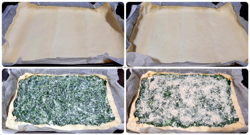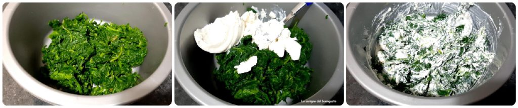 Dejar descongelar las espinacas, luego escurrirlas bien y mezclarlas con la ricotta, mezclar bien, luego añadir sal y pimienta al gusto….