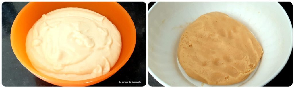 Posteriormente añadir la levadura para postres y la harina restante, amalgamar todo en el bol hasta que sea posible, luego continuar en una superficie de trabajo obteniendo un bloque.