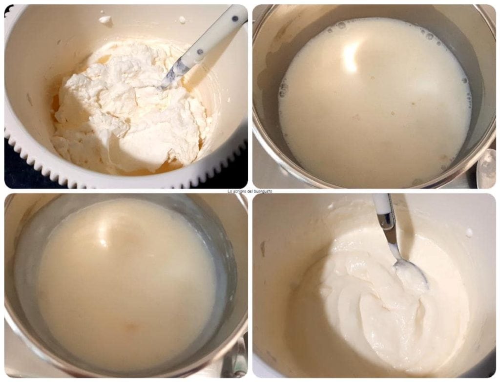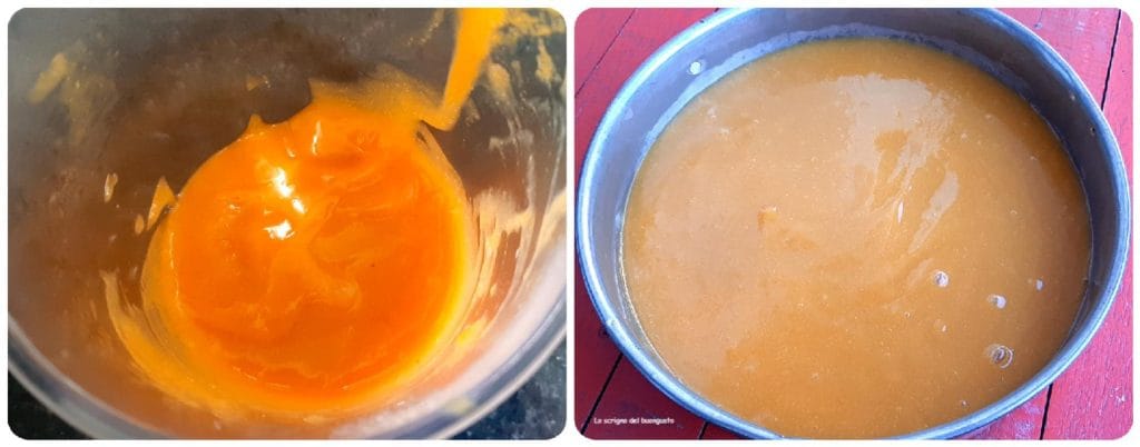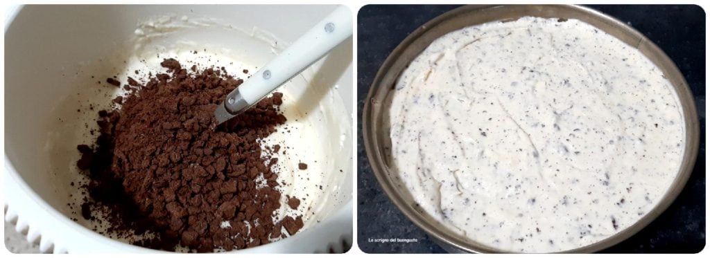 Verter la crema obtenida sobre la base del pastel creando la tercera capa, nivelar bien y volver a poner en la nevera durante al menos 3 horas.