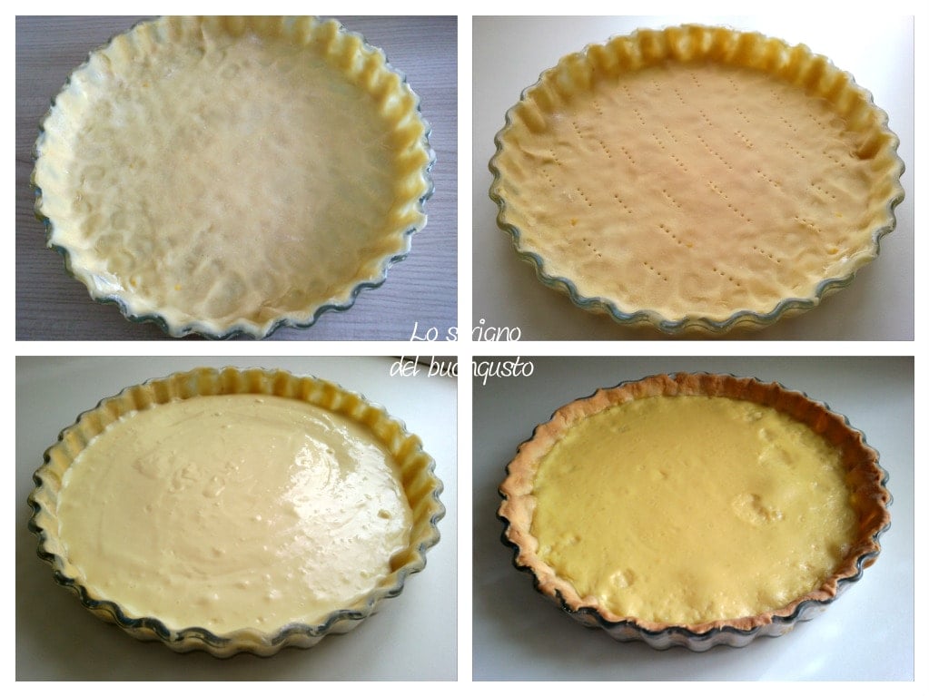 Preparar la masa quebrada poniendo juntos todos los ingredientes gradualmente y trabajando todo con una batidora para dulces, luego poner la mezcla en una superficie de trabajo y continuar amasando hasta obtener una bola.
