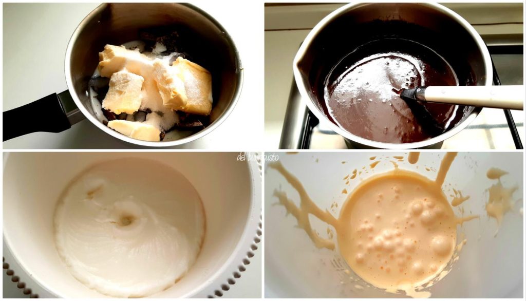 Finalmente añadimos el chocolate fundido mezclando durante unos minutos e incorporando bien el chocolate al resto de la masa.
