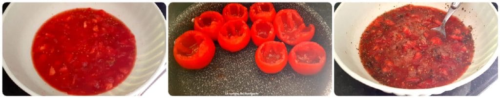 Son realmente muy buenos y se preparan con tomates que se mantienen bastante firmes, de lo contrario, al vaciarlos y también durante la cocción, corren el riesgo de romperse y expandirse perdiendo el contenido.