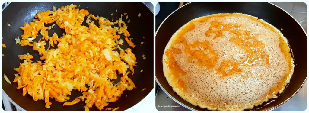 Bastará con cocinar primero las cebollas y las zanahorias un poco en la sartén, luego unir todo y hacer la tortilla.