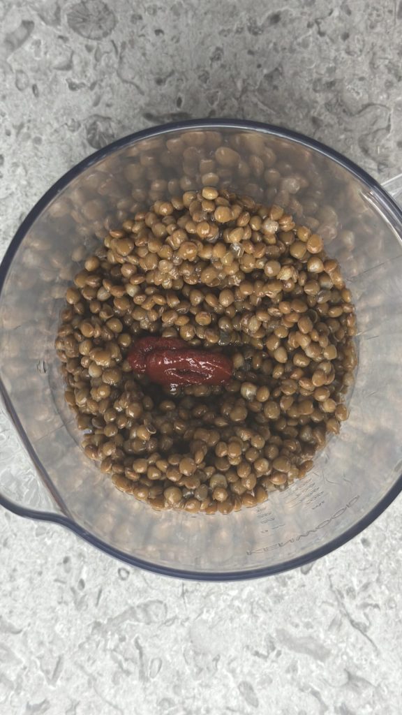 Empieza la preparación de las albóndigas de lentejas al horno escurriendo y enjuagando las lentejas.
