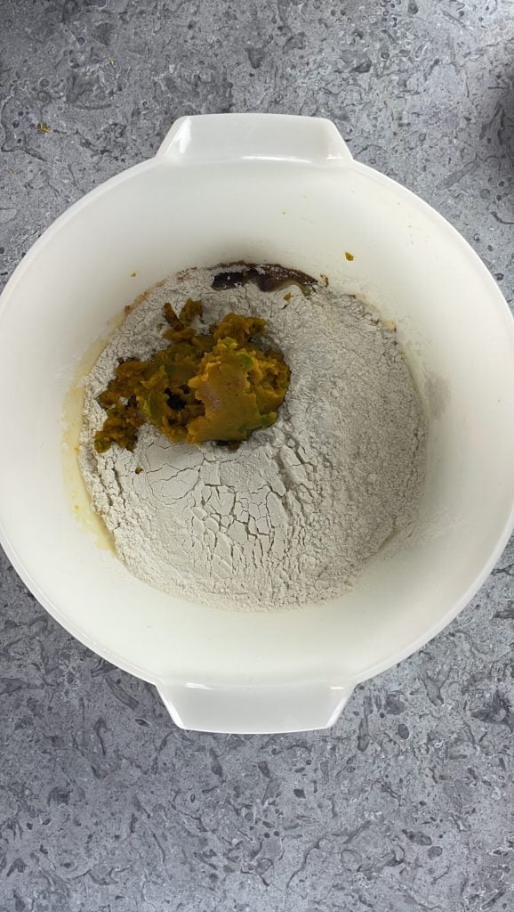 Una masa sencilla de realizar en casa, de color cálido y aroma cítrico que conquista al primer bocado. La calabaza cocida al vapor regala suavidad y dulzura, mientras que la cáscara y el jugo de naranja aportan una nota fresca y ligera que se combina a la perfección con el resto de la masa.