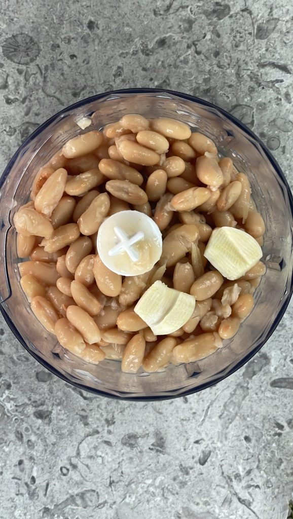 Crema de alubias blancas al limón y albahaca, simple y cremosa.