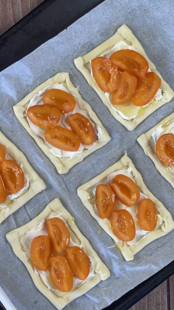 Hojaldritos de albaricoque y queso, una deliciosa receta que combina la dulzura de los albaricoques maduros con la cremosidad del queso, todo envuelto en un crujiente hojaldre.