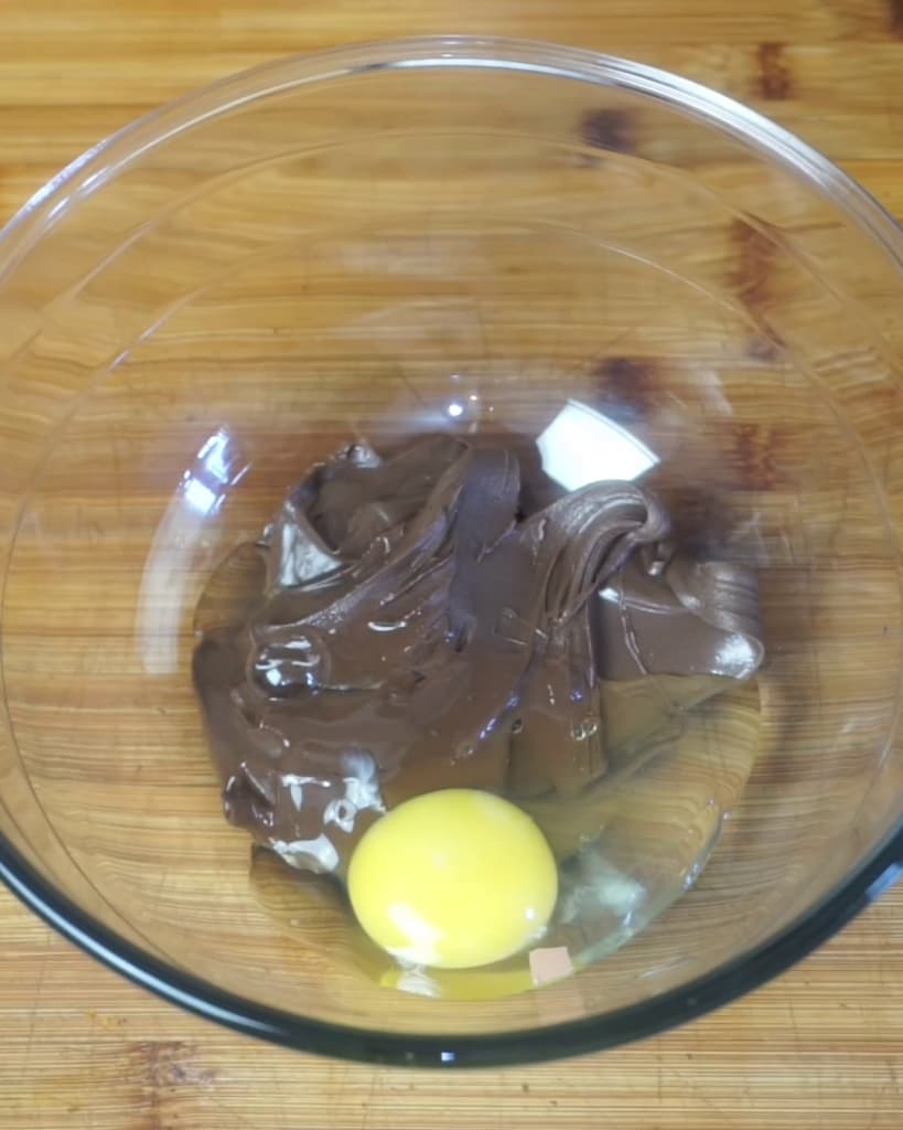 Comienza la preparación de los Nutellotti de Navidad mezclando la crema de avellanas para untar y el huevo con la batidora eléctrica durante un par de minutos.