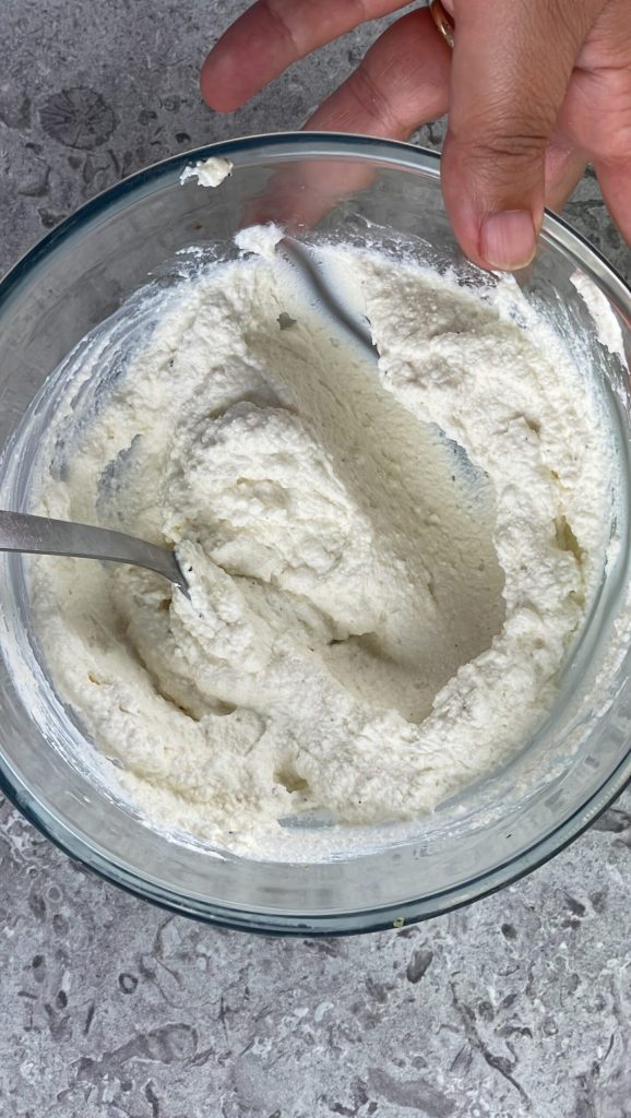 Mezcla bien para amalgamar los ingredientes y hacer la ricotta más cremosa.