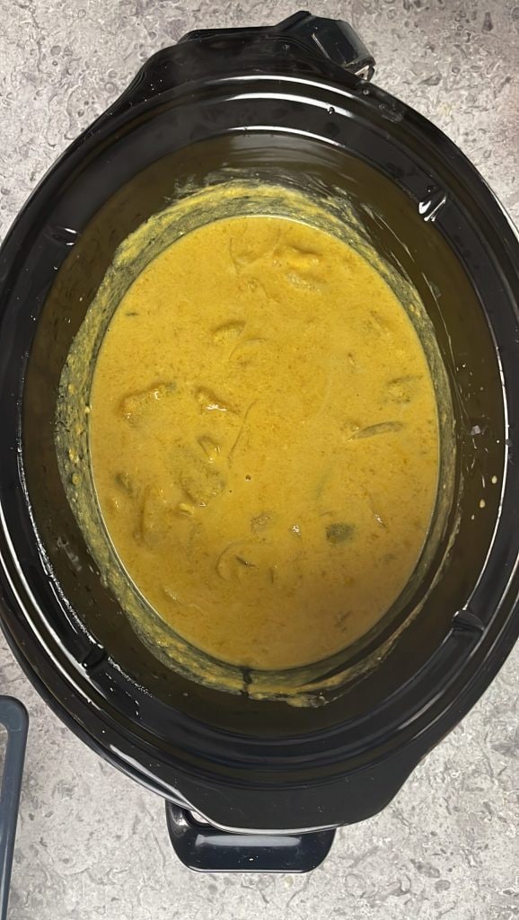 Pollo con calabaza y curry en slow cooker, un plato cremoso y especiado, perfecto para el otoño. ¡Solo hay que preparar los ingredientes y dejar que la slow cooker haga el resto!