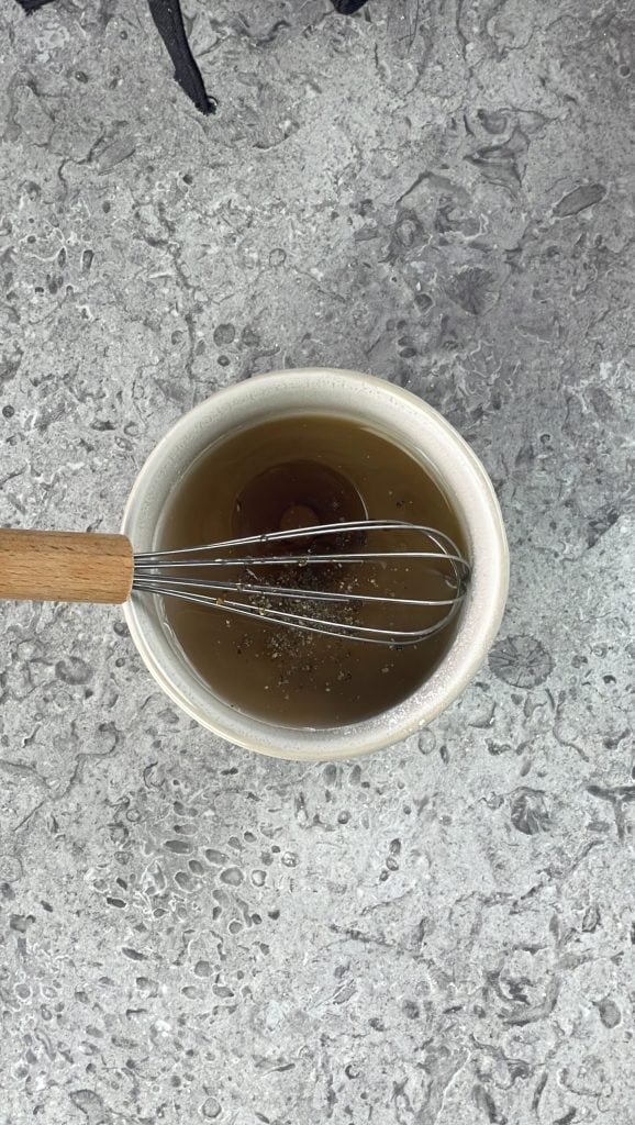 Déjalo reposar en la nevera por 30 minutos.Mientras tanto, prepara la salsa de aderezo.