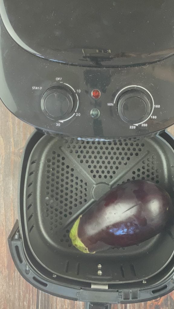 Después de lavarla, pínchala con un tenedor o un pincho y colócala en el cesto de la freidora de aire.Cócela a 180°C durante unos 25 minutos, la pulpa debe volverse muy tierna.