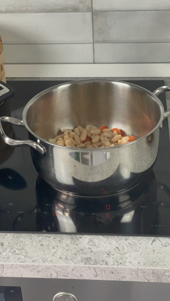 Escurre y enjuaga las alubias y ponlas en la olla.