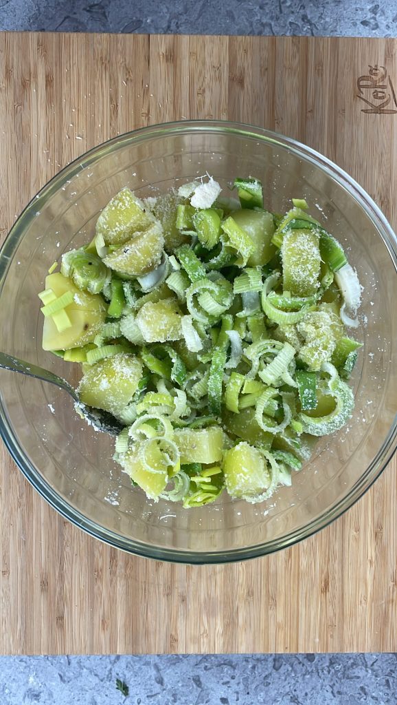 Una envoltura crujiente de masa brisé encierra un relleno cremoso y sabroso, donde el sabor delicado de las patatas se combina con la dulzura del puerro, mientras que la panceta añade un toque salado. Todo se enriquece con mozzarella fundente y una pizca de parmesano, que aporta un toque de sabor irresistible.