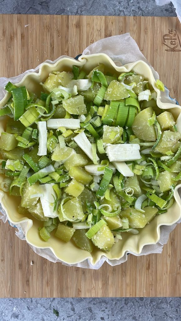 Tarta rústica de puerros y patatas
