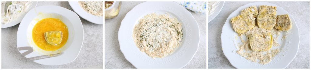 Sumérgelas en el huevo batido y luego en el pan rallado: una vez empanadas, están listas para freír.