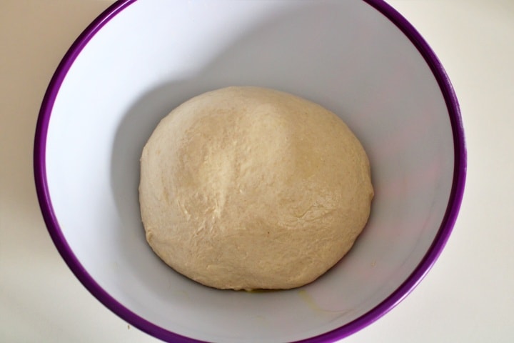 • Formad un panecillo y dejadlo fermentar en un bol ligeramente untado con aceite, durante al menos 1 hora (o incluso 2) y en cualquier caso hasta que su volumen se duplique.