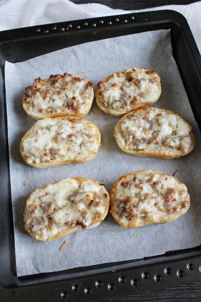 Aquí están los Crostini Salchicha y Stracchino listos. Servidlos calientes o tibios. ¡Buen provecho!