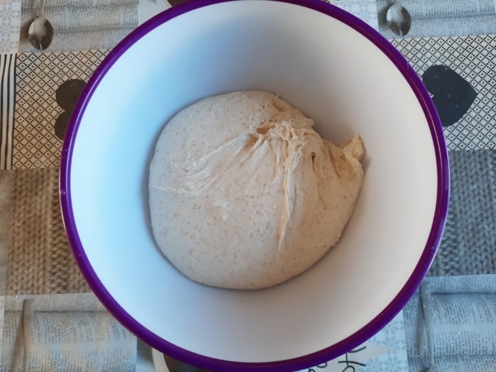 • Transfiere la masa a un bol y deja reposar en el frigorífico durante 2 horas (o a temperatura ambiente, cubierto, durante aproximadamente 1 hora). Aquí la masa después del reposo.